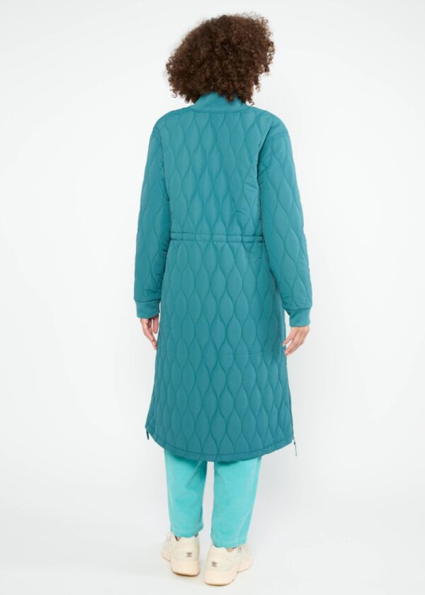 Stedelijk, knus, verfijnd: deze lange gewatteerde jas combineert functie en stijl voor het koudere seizoen. De strakke, gewatteerde buitenkant geeft het een moderne uitstraling, terwijl geribbelde details aan de kraag en manchetten voor extra comfort zorgen.