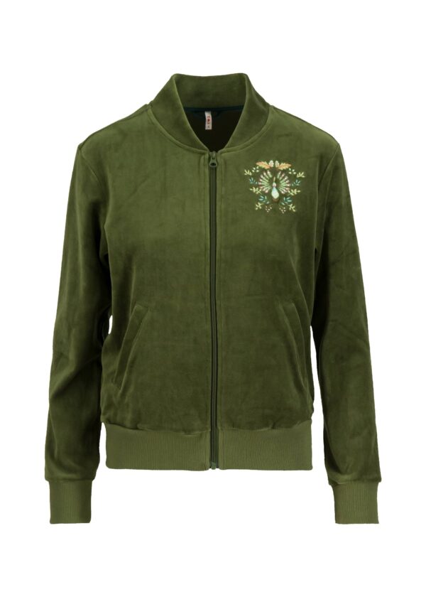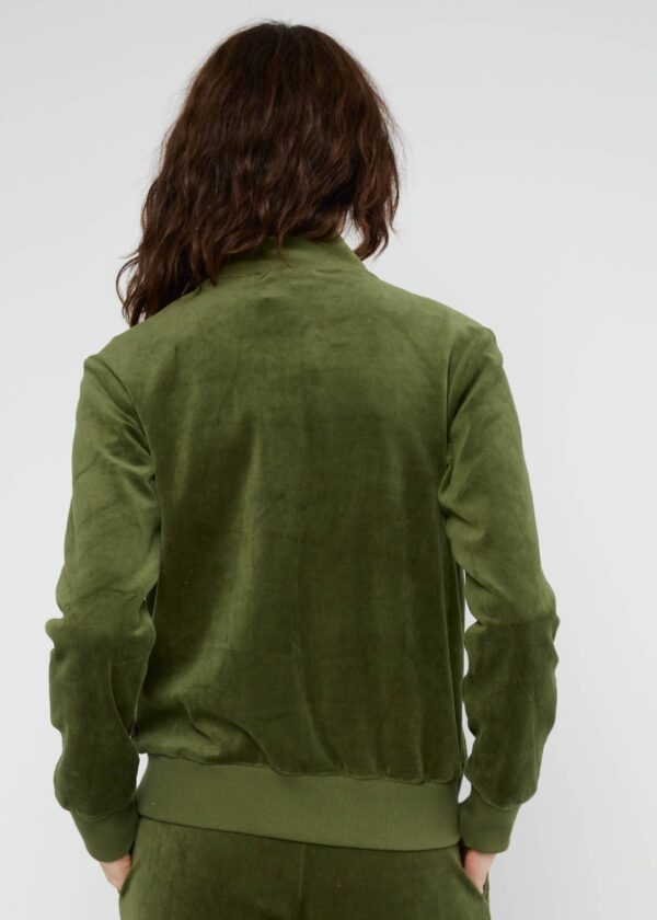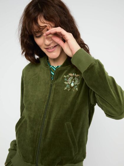 Zacht, gemakkelijk, klaar om te mixen: de Velvet Harmony Bomber is een modern velours jasje van elastisch nicki fluweel gemaakt van 80% biologisch katoen en 20% gerecycled polyester. Een relaxte pasvorm met subtiel verlaagde schouders, een slanke opstaande kraag en zachte manchetten zorgt voor comfort, terwijl de ritssluiting aan de voorkant en nette paspelzakken het sportief houden.
