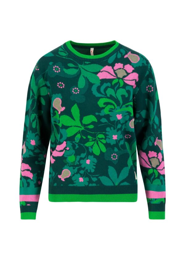 Een relaxte pasvorm met geribbelde manchetten aan de mouwen, zoom en halslijn behoudt zijn vorm, terwijl het gedetailleerde jacquardpatroon een unieke touch geeft. Perfect voor koele dagen – combineer met een jeans en laarzen voor een wandeling in de stad, een corduroy broek en een jas voor op kantoor, of ontspan thuis met een comfortabele joggingbroek. Een feelgood-kledingstuk dat warmte en stijl met gemak combineert.