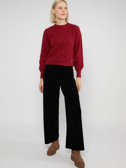 Stevig, knus en gemakkelijk te combineren: dit breisel combineert 65% biologisch katoen met 35% biologische wol – zacht, warm en vormvast voor herfst/winter. Een klassieke ronde hals ontmoet relaxte mouwen met een subtiele pof, afgewerkt met comfortabele geribbelde manchetten.