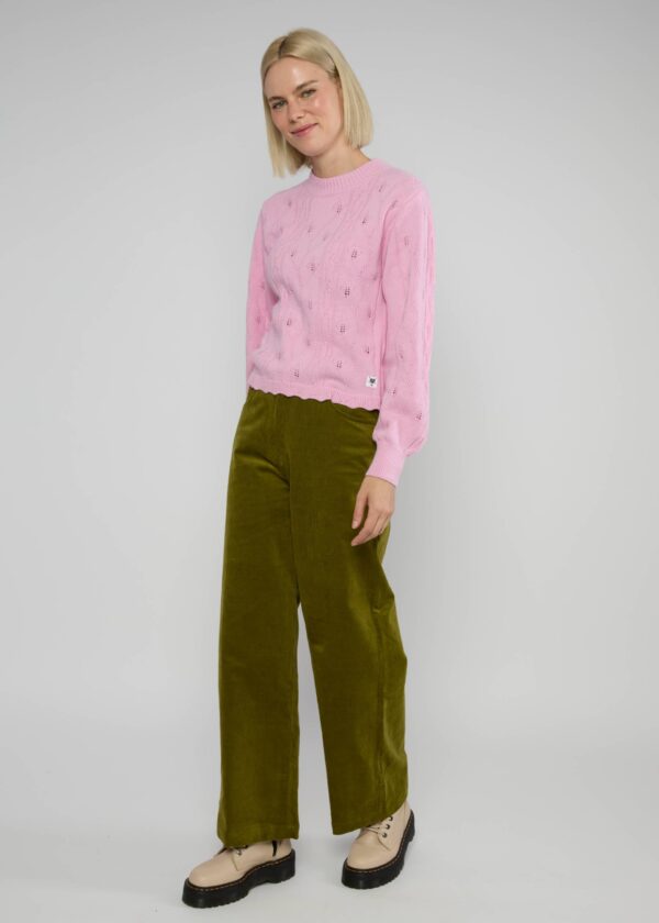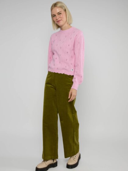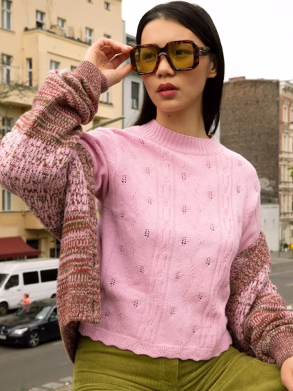 Stevig, knus en gemakkelijk te combineren: dit breisel combineert 65% biologisch katoen met 35% biologische wol – zacht, warm en vormvast voor herfst/winter. Een klassieke ronde hals ontmoet relaxte mouwen met een subtiele pof, afgewerkt met comfortabele geribbelde manchetten.