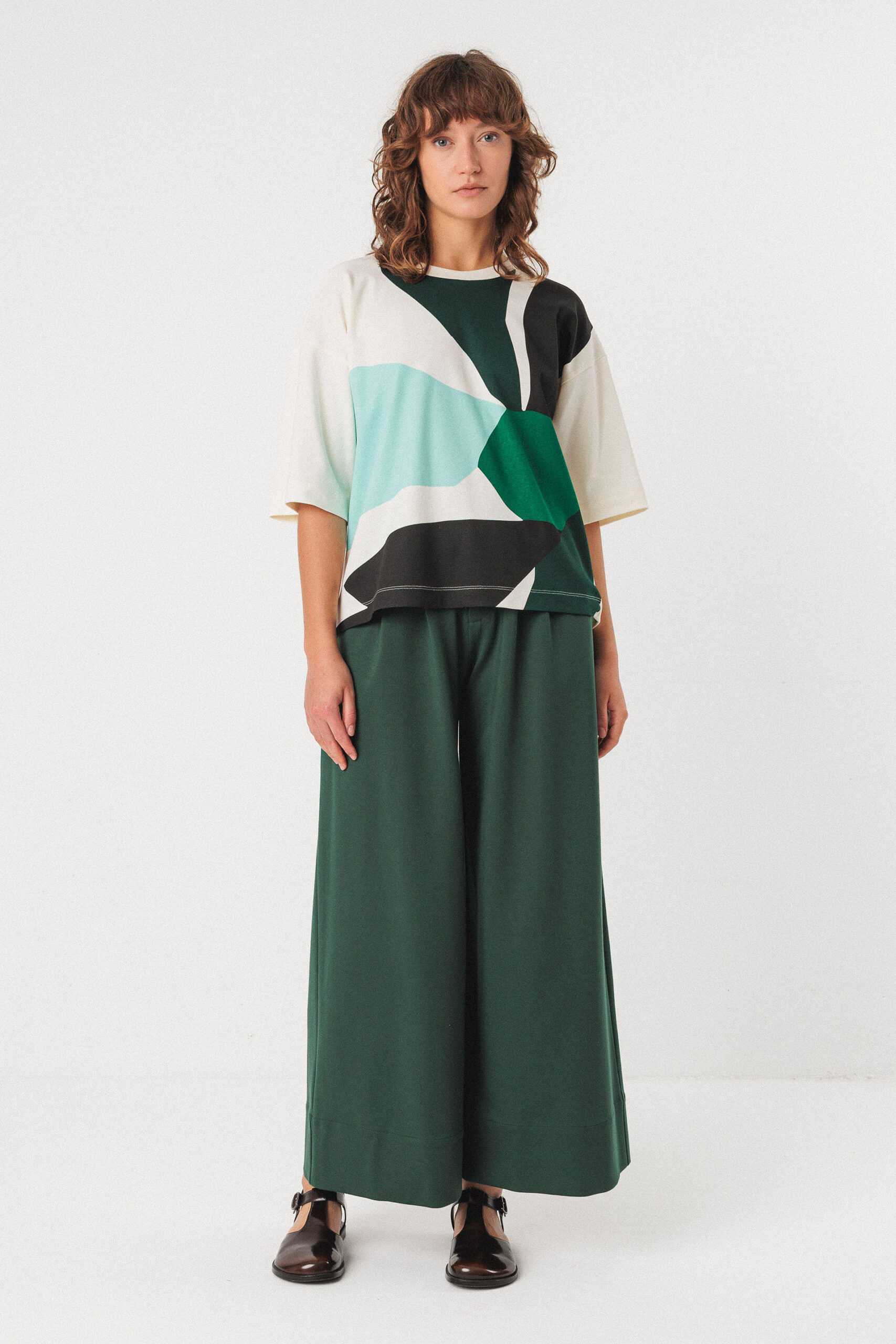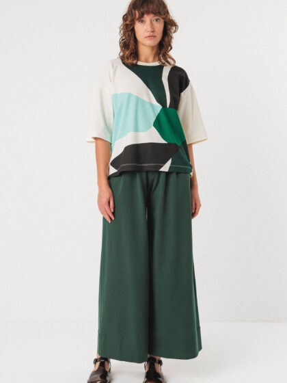 Losvallende top met een ronde hals en korte mouwen van GOTS-gecertificeerd biologisch breisel.